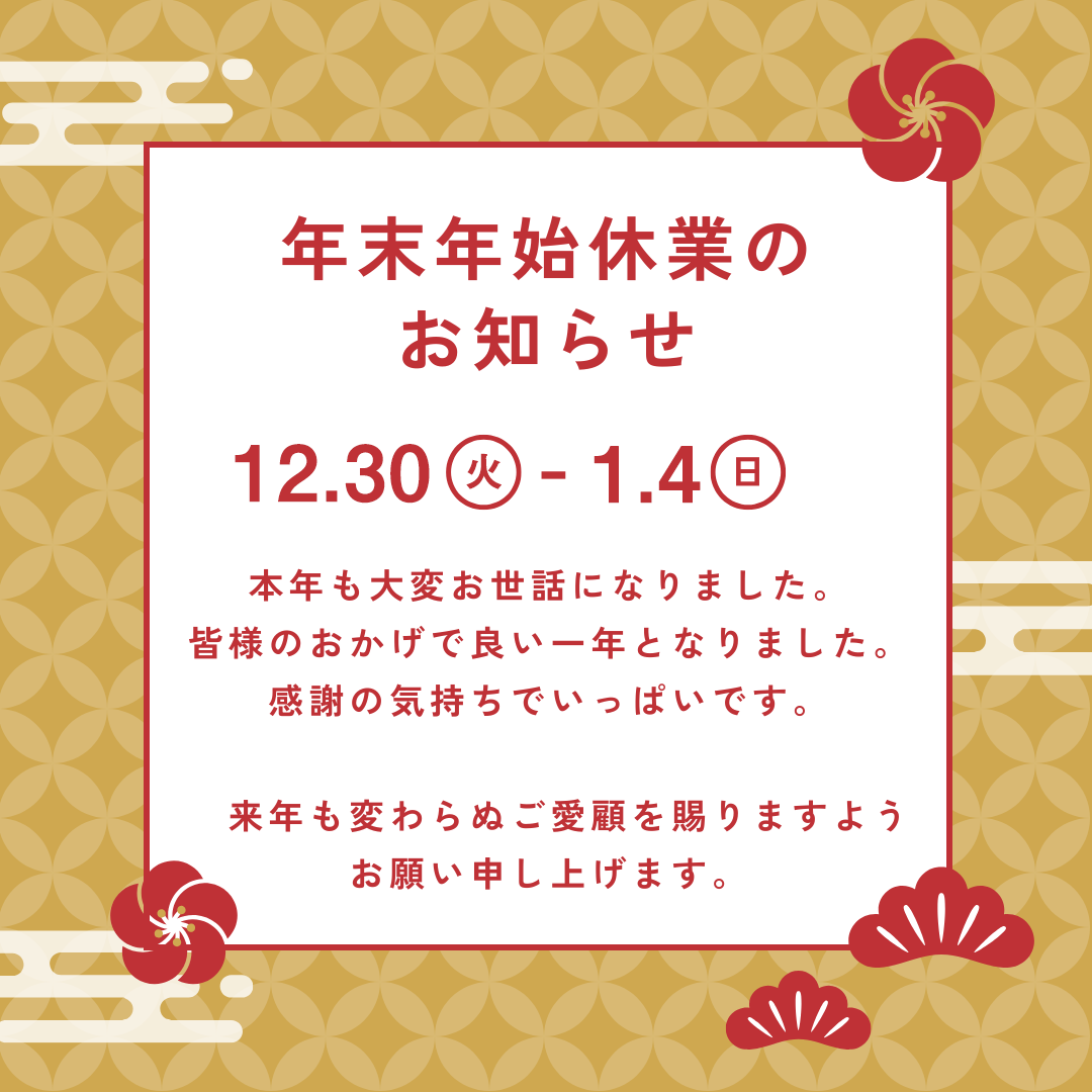 休業期間中のお問い合わせに関しましては、1月5日(月)より順次対応させていただきます。